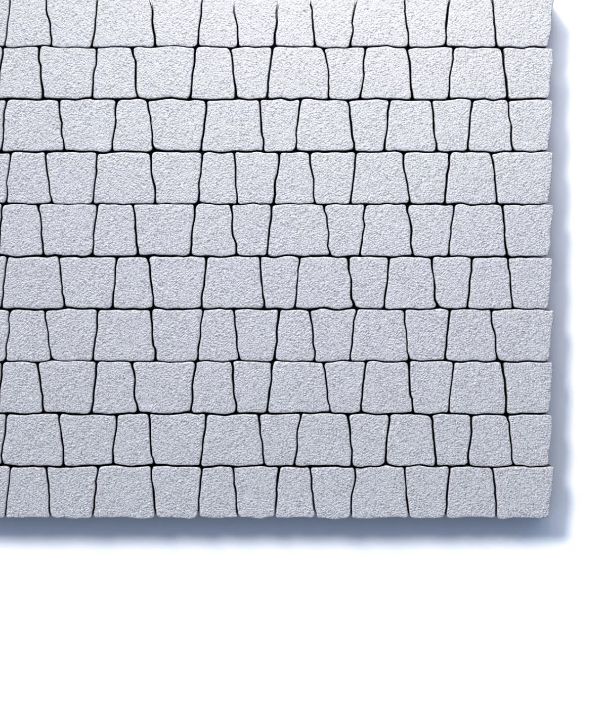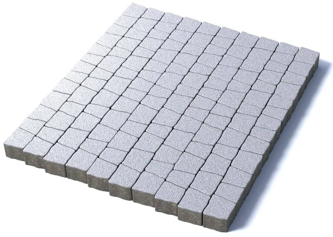 Состоит из 5-и элементов, которые выкладываются в хаотичном порядке рядами. Трапециевидная форма плиты позволяет выполнять как прямую, так и радиусную выкладку. Изготавливается по уникальной технологии методом полусухого вибропрессования из бетона. Брусчатка Абрис изготовлена с добавлением натуральной мраморной крошки белого цвета, отличается высокими физико-механическими свойствами.