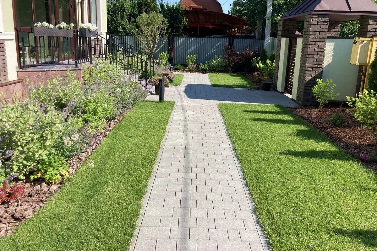 • Благоустройство дома: плитка в цвете Антрацит и шаговые дорожки