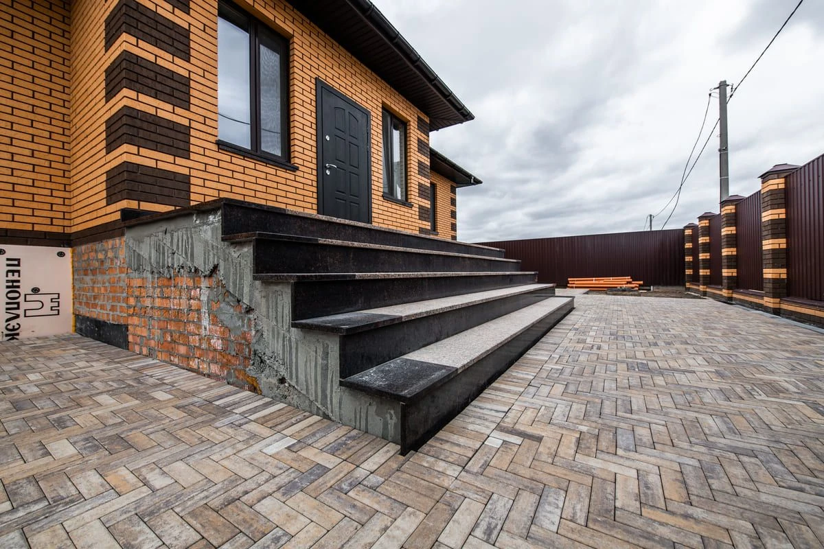 • Благоустройство дома: плитка в цвете Антрацит и шаговые дорожки